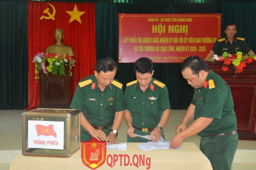 Hội nghị tiến hành lấy phiếu tín nhiệm đối với các đồng chí là Ủy viên Ban Thường vụ và Thủ trưởng Bộ CHQS tỉnh. Quá trình lấy phiếu tín nhiệm diễn ra với tinh thần, trách nhiệm cao, bảo đảm công tâm, khách quan, nghiêm túc, đúng quy trình ./.