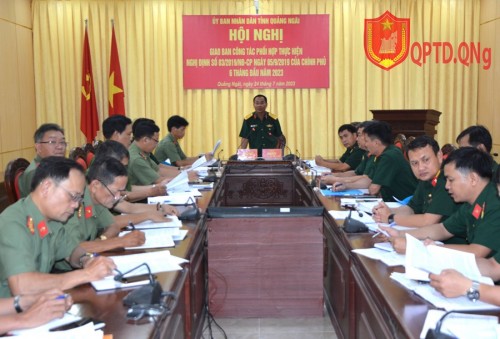 Chiều ngày 24/7, UBND tỉnh Quảng Ngãi tổ chức Hội nghị giao ban công tác phối hợp thực hiện Nghị định số 03/2019/NĐ-CP của Chính phủ về công tác phối hợp thực hiện nhiệm vụ bảo vệ an ninh quốc gia, bảo đảm trật tự, an toàn xã hội, đấu tranh phòng, chống tội phạm và nhiệm vụ quốc phòng 6 tháng đầu năm 2023 giữa lực lượng Công an tỉnh, Bộ Chỉ huy Quân sự tỉnh, Sư đoàn 307, Bộ Chỉ huy Bộ đội Biên phòng tỉnh. Lãnh đạo và các phòng, ban chức năng của 03 lực lượng tham dự Hội nghị.