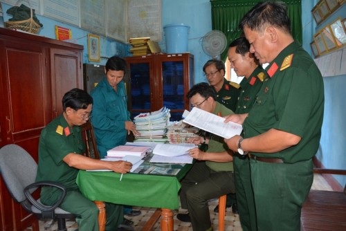 Hội đồng Giáo dục QPAN tỉnh kiểm tra hệ thống văn bản tại cơ quan quân sự xã Hành Tín Tây, huyện Nghĩa Hành