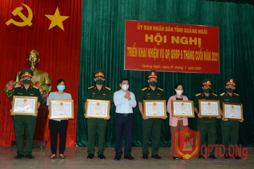 Tại hội nghị, UBND tỉnh và Bộ tư lệnh Quân khu 5 đã trao bằng khen cho các tập thể vá cá nhân có thành tích xuất sắc trong 6 năm thực hiện Luật Nghĩa Vụ Quân sự, công tác tuyển quân năm 2021 và Đợt thi đua chào mừng cuộc bầu cử quốc hội và Hội đồng nhân dân các cấp nhiệm kỳ 2021-2026.