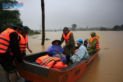 Vào lúc 14 giờ, tại xã Đức Hiệp, ca nô và xe của Bộ Chỉ huy quân sự tỉnh đã đưa bà Huỳnh Thị Huyến, thôn Thuận Hòa, xã Hành Phước (Nghĩa Hành) đến Bệnh viện huyện Mộ Đức để cấp cứu kịp thời.