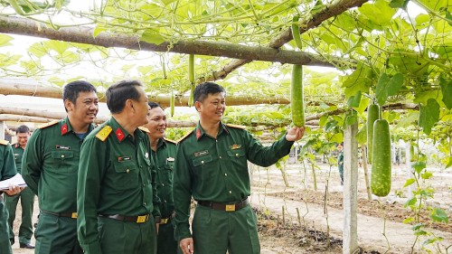 Thượng tá Huỳnh Kim Hải, Phó Chỉ huy trưởng Bộ CHQS tỉnh cùng đoàn công tác tiến hành kiểm tra mọi công tác chuẩn bị tham gia Hội thi “Vườn rau xanh, sạch, đẹp gắn với chất lượng bữa ăn và sức khỏe bộ đội” tại Trung đoàn BB887(Bộ CHQS tỉnh).